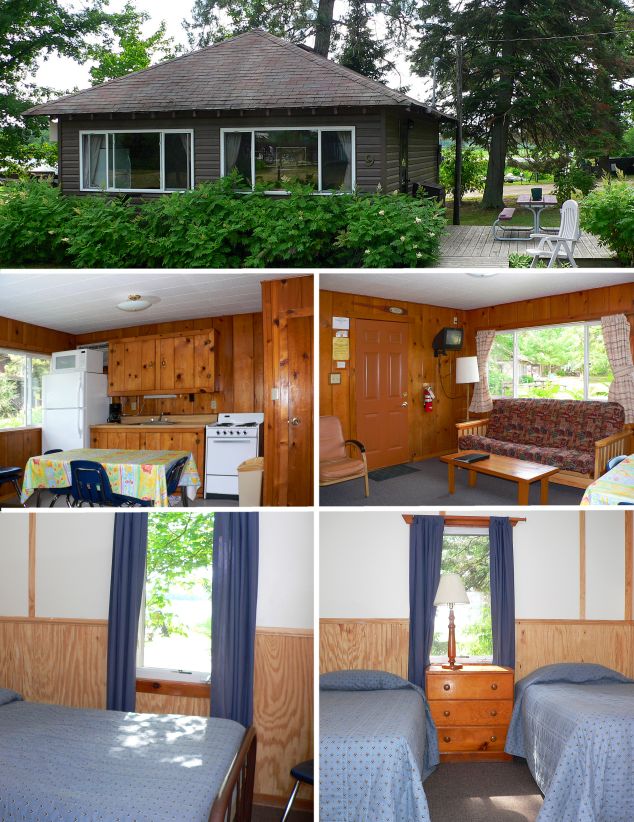 Cabin 9 has 2 bedrooms with 1 full size and 2 twin beds and a sleeper couch.  The cottage has a great view of the gorgeous sunsets over Cutfoot Sioux and is conveniently located near the pool and docks.