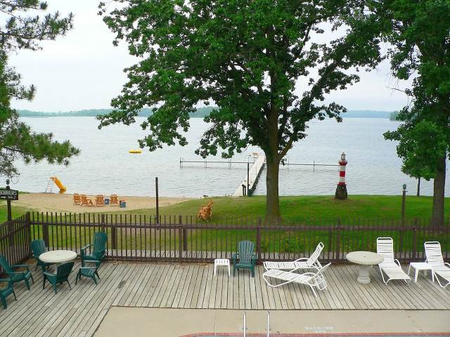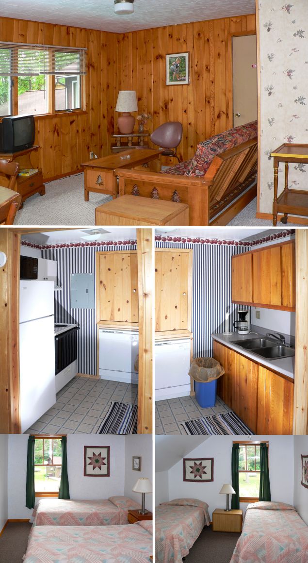 Cabin 23 has 2 bedrooms with 2 full and 3 twin beds plus an innerspring mattress sleeper futon.  The cottage is attached to the lodge and is a second story cabin.  The cabin features a "crow's nest" deck right above the pool.  The elevated view looks due West and provides great views of the sunsets over Cutfoot Sioux.  Wonderful breezes off the lake!